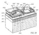 As best shown inFIGS. 48 and 51, theactuator beam807 is substantially U-shaped in plan, defining a current path between theelectrode809 and anopposite electrode841. Each of theelectrodes809 and841 is electrically connected to a respective point in thecontact layer830. As well as being electrically coupled via thecontacts809, the actuator beam is also mechanically anchored to anchor808. Theanchor808 is configured to constrain motion of theactuator beam807 to the left ofFIGS. 45 to 47 when the nozzle arrangement is in operation.