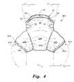 Theinterior surface240 of thediaper200, specifically, thecentral portion300 and thelegs400, preferably includes two absorbent materials that are disposed on top of each other in layers. A liner (not shown) made of identical material and similar in form to that ofFIGS. 1 and 2,elements25 and described above, may cover the interior absorbent materials havinginterior surface240 as desired.