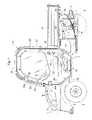 Thedoor lock38 which can be locked is fixed to thebracket32b. By closing thedoor30 and engaging of thedoor lock38 with alock pin38afixed to thedoor frame21, thedoor30 can be maintained in a closed position (seeFIG. 6). An unlockingdevice38bis attached to thedoor lock38. When the unlockingdevice38bis operated from inside or the open/close handle37 is operated from outside, thedoor lock38 is canceled for allowing thedoor30 to be opened.