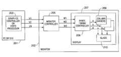 A display interface betweencontroller208 andcolumn drivers209 is capable of transmitting D-bit components of video data of a first type (e.g., D-bit “Red” color components of video data); D-bit components of video data of a second type (e.g., D-bit “Green” color components of video data); and D-bit components of video data of a third type (e.g., D-bit “Blue” color components of video data).