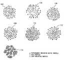 112 shows light-weighting particles concentrated in “cores” throughout the composite with clay particles dispersed throughout the rest of the composite surrounding the light-weighting “cores” and performance-enhancing active particles located on the outer edges of the composite.