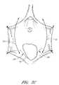 With reference toFIG. 2, theduckbill valves80,90,100,110,120 will be described. These valves may all be identical and are labeled5 inFIG. 2. InFIGS. 2A-2E theduckbill valve5 is shown closed, which occurs when fluid is not flowing through it, for example, when the patient has filled the pillow enough to achieve both comfort and continence. However, this would also be the appearance during backflow, for example when fluid tries to flow backward from the pillow to the reservoir, holding the fluid level to that chosen by the doctor and patient.FIGS. 2A-F show the generally V-shapedduckbill valve5. Theduckbill valve5 has arim7, anopening6, and two planar sides orramps9 which taper down to theopening6. Theopening6 is produced by the convergence of the tworamps9. When liquid or gas is flowing through theduckbill valve5 the liquid flows in the direction from therim7 to theopening6 and the opening is pushed open (seeFIG. 2F). When the flow is stopped, theopening6 returns to its static state, closed (seeFIG. 2E). When a change in pressure causes a backflow of the liquid or a directional change of the liquid from theopening6 to therim7, theopening6 remains closed and no liquid is allowed to flow backwards. Without being restricted to the following theory, the shape of theduckbill valve5 as well as the material memory keeps liquid which is flowing backwards from opening the seal formed by theopening6. The water or liquid exerts pressure on the planar sides orramps9 which keeps theopening6 closed. Alternatively, as shown inFIG. 2F, by applying pressure to the duckbill valve at approximately the point numbered as77, the patient or surgeon can purposefully open thevalve opening6.
