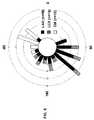 FIG. 6 is a polar histogram representing the information summarized inFIGS. 4 and 5.FIG. 6 shows a polar histogram of frontal plane T axes distribution. Filled bars are LAD ischemic patients, hatched bars are LCX ischemic patients, and open bars are cardiac memory patients. Each circular dashed line represents two patients. The histogram shows that a typical cardiac memory patient will show T-wave vectors generally in the approximately −90° direction. Ischemic patients, on the other hand, will show T-wave vectors generally between about +90° (probably from about as low as +75°) and about +180° (probably up to about +200°). The difference in T vector direction between groups is statistically significant (p<0.01).