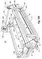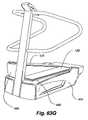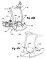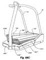 As illustrated inFIGS. 97,99A and99B, in one embodiment, abottom roller30,31 is mounted between a pair ofbrackets918 on thebase frame14 so as to allow the treadle12 (i.e., treadle frames52 or framework androllers28,30,31 held in generally rigid position relative to each other) to pivot as a single unitary structure. In other embodiments, thepivot point330 between thetreadle12 and thebase frame14 is located along the treadle frames52 or framework away from the rollers (e.g., see pivot arrangement inFIG. 92).