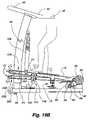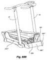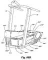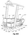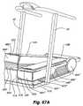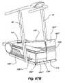 As shown inFIG. 98A, with respect to the four roller embodiment of the invention, to maintain therollers28,30 in a generally rigid relationship to each other, theupper treadle frame52A can be supported on the bottom treadle frame by a rigid structural member or a stiff dampener and/orspring structure928. With respect to the three roller embodiment, a rigidstructural member930 or a stiff dampener and/or spring structure may also be employed to maintain therollers28,30,31 in a generally rigid relationship to each other.