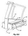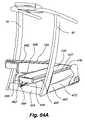 As indicated inFIGS. 97-99B, in one embodiment, eachtreadle12 has more than two rollers about which the continuous tread belt18 (i.e., tread surface) changes direction. For example, in one embodiment, as illustrated inFIGS. 97,98A and99A, eachtreadle12 has anupper treadle frame52A and alower treadle frame52B. Eachtreadle frame52A,52B has afront roller28 and arear roller30 about which thecontinuous tread belt18 changes its direction of travel. Thus, as illustrated inFIGS. 98A and 99A, in one embodiment, the treadle frames52A,52B androllers28,30 of eachtreadle12 are oriented, when viewed from the side, such that each of the fourrollers28,30 forms a single corner of a trapezoid.