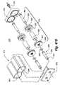 As shown inFIG. 113, in one embodiment, theroller securing member1008 has an elongatedrectangular bottom portion1012 adapted to be secured to thebase frame14 and has a pair ofend caps1014 extending upward from therectangular bottom1012. Eachend cap1014 is provided with apin1010. Eachroller28,30 resides between a pair ofend caps1014, and the end of eachroller28,30 pivotally receives thepin1010 of theadjacent end cap1014. This permits theroller28,30 to pivot or rotate about thepins1010 within the roller-securingmember1008.