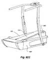 As illustrated inFIG. 105, a generallyU-shaped frame structure14 is provided having a rectangular base portion and rectangular side supports extending upwardly from the base portion. Eachtreadle12 is pivotally attached to a rectangular side support through a pair ofswing arms942. In one embodiment, each swing arms is attached to a portion of thetreadle frame52. In another embodiment, eachswing arm942 is attached to atreadle12 at aroller28,30.