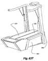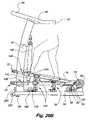 As indicated inFIG. 109, in one embodiment, the rear end of thetreadles12 are pivotally attached to theframe14 by an upwardly extendingflange918, which is connected by apivot rod330 or support member extending through the interior of therear rollers30, coaxially with the pivot axes of the rollers. Alternatively, in one embodiment, the pivot rod may extend through a portion of the treadle frames52 such that the treadles pivot330 about a pivot point ahead of therear rollers30.