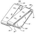 For a discussion of an embodiment of the exercise machine employing anon-continuous tread belt18, reference is now made toFIGS. 112-114.FIG. 112 is a side elevation of the front andrear rollers28,30 and thetread belt18 of an exercise machine employing anon-continuous tread belt18.FIG. 113 is an exploded isometric view of thetread belt18 androllers28,30 illustrated inFIG. 112, according to one embodiment.FIG. 114 is an exploded isometric view of thetread belt18 androllers28,30 illustrated inFIG. 114, according to another embodiment.