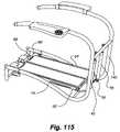 As shown inFIG. 107, in one embodiment, aspring428 is connected between therear swing arms942′ and the rear legs of theside frame members972. In one embodiment, thespring428 is positioned along theswing arm942′ so that after thetreadle12 has moved forwardly, the force developed about a portion of thespring428 returns theswing arm942′ to a generally vertical orientation, which thereby returns thetreadle12 to a generally central position.