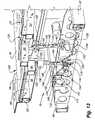 FIG. 12 is a partial cut away isometric view of the exercise device shown inFIG. 2, the view illustrating the rocker arm orientated in a position corresponding with the left treadle about level with the right treadle.