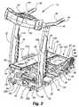 As shown inFIGS. 100 and 101A, thetreadles12 have anupper treadle frame52A and alower tread frame52B. Theupper tread frame52A supports afront roller28, arear roller30 and adeck26 that supports the tread belt18 (i.e., tread surface). Thelower treadle frame52B supports afront roller28 andrear roller30. As indicated inFIGS. 100 and 10A, acontinuous tread belt18 is routed about thetreadle12 and changes direction at eachroller28,30.