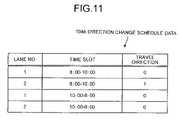 FIG. 11 is a table of an example ofchange schedule data104bshown inFIG. 10. Thechange schedule data104bis data pertaining to lane number, time slot, and travel direction.