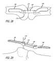 In a second approach (SeeFIG. 27), aplastic template172 is placed over the patient'sleg175 in the area where the interventional implantation procedure is to occur. Starting base component sizes F1and T1and a link component C1are roughly approximated to a patient's anatomy. A pen or other marker is used to outlineappropriate base sizes176. Perforated outlines can allow for directly marking a patient's skin. Incision lines (not shown) can also be made in the area.