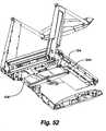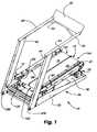 In the arrangement shown inFIG. 11, the deck support members are supported at one end area by the outside treadle frame members and carry the load of the deck along their lengths. It is also possible to support the deck support members other than at the ends. In any event, in one implementation, thedeck support members56 may define a cantilever in that the deck support members are supported at one end or at a fulcrum and carry a load (i.e., the deck) along their length or beyond at one side of the fulcrum.