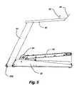 Alternatively, in accordance with the teachings of various applications incorporated by reference herein, a mechanical (non-hydraulic) lockout assembly may be provided with an exercise device conforming to the present invention. Generally, the lock-out assembly comprises a pair of blocks that may be positioned under the treadles to block reciprocal movement of each treadle. Particularly, with such a lock-put assembly, the treadle assemblies may be locked out so as to not pivot about the rear axis. When locked out, the belts of the treadle assemblies collectively provide an effectively single non-pivoting treadmill-like striding surface. By adjusting the length of one or both of theturnbuckles194 through rotation of the rod during assembly of the exercise device or afterwards, the orientation of the two treadles may be precisely aligned so that the two treadles belts, in combination, provide a parallel striding surface in the lock-out position.
