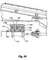 FIG. 55 is a partial isometric view of the front section of the right treadle highlighting a front roller adjustment assembly; and