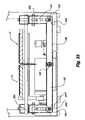 The front roller may also be angularly adjusted with regard to the outside member.FIGS. 19A,19B, and19C illustrate a top view, a front view, and a side view, respectively, of thebelt tensioner plate68. As shown, thetongues78 protruding from the upper and lower portions of the belt tensioner plate are not rectangular. Instead, the rear inner surface (the surface facing the roller) and the front outer surface (the surface away from the roller) of the upper and lower tongues are slightly angled or cambered. In one example as shown inFIG. 19A, the camber is about 2°. Other cambers are, however, possible. Referring toFIGS. 16 and 18, anangular adjustment plate90 is bolted between the lower and upper plates (70,72). The angular adjustment plate defines a threaded aperture adapted to receive anangular adjustment bolt92. The angular adjustment bolt engages the outside surface of thebelt tensioner plate68 to angularly orient the tensioner plate in thechannels76. In this way, the angular orientation of the front roller may be adjusted. When thebelt18 is placed around the front and rear roller (22,29), several hundred pounds of force may be exerted against the rollers urging the front roller rearwardly. Increasing the engagement of the angular adjustment bolt against the tensioner plate causes the outer end of the roller to pivot forwardly against the rearward force from the belts. In contrast, as the front roller is counteracting a rearward force imparted by the belt tension, decreasing the engagement of the adjustment bolt against the tensioner plate allows the belt to swing the roller rearwardly. In this way, the roller may be angularly oriented to ensure that it is square to the direction of belt travel, which helps to ensure that the belt stays properly centered on the rollers during use.