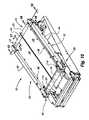 Referring again toFIG. 10, thebelt decks20 are located on the top of each treadle frame. In one particular implementation, the decks are supported in a cantilever arrangement on thedeck support members56 extending laterally from the outertreadle frame members54. The deck may be directly bolted to the deck support members, may be secured to the frame in combination with deck cushioning or a deck suspension system, or may be loosely mounted on the treadle frame. Eachbelt deck20 is located between therespective front22 and rear24 rollers of each treadle assembly (12,14). The belt decks are dimensioned to provide a landing platform for most or all of the upper run of thetread belts18 between the rollers. In one embodiment, the decks are about 1″ thick, with an MDF core and a phonolic laminate on the upper and lower runs of the deck. The edges of the decks may include a chamber to help prevent damage during shipping and assembly.