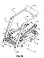 FIG. 27 is a section view taken along line27-27. As shown inFIG. 26,27, and others, amotor shaft134 extends outwardly from the side of the motor. The motor is mounted so that the motor shaft is generally parallel to the drive shaft102 (e.g., the rear axle or the rear roller assembly). Additionally, different diameter pulleys may be connected with the motor shaft. Adrive belt136 is connected between the drive pulley and the motor shaft (or the motor shaft pulley should one be used). Accordingly, the motor is arranged to cause rotation of therear roller assembly112. The rollers, in turn, cause rotation of the tread belts of each treadle.
