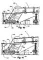 FIGS. 40,43, and35F illustrate theright treadle14 in about its lowest position, and show theleft treadle12 in about its highest position. At this point, the user has stepped down on the front of the left treadle and has begun pressing downward with the left leg. The user is also beginning to lift the right leg. The downward force on the left treadle will be transferred through the