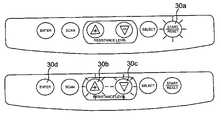 Referring toFIG. 6, as previously mentioned, anexercise console14 may provide a substantially fixed array ofbuttons30 for operation by a user. Thesebuttons30 may provide a user various input options which are selectable in a pre-determined sequence by operation of thebuttons30. For example, in the illustrated embodiment, thebuttons30 may provide input options such as “enter,” “scan,” “select,” “start,” “reset,” and arrows for adjusting resistance levels, a workout program selected, workout level, workout time, a speed, user weight, or the like. In order to program theexercise console14, the user selects thecorrect buttons30 and selects them in the correct order.
