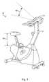 Referring toFIG. 1, anexercise device10 in accordance with the invention may include aframe12, orother structure12, and anexercise console14 substantially rigidly attached to theframe12. As previously mentioned, anexercise console14 typically enables a user to perform tasks such as to program, control, and monitor progress on anexercise device10. Although illustrated as a stationary bicycle in this example, anexercise device10 in accordance with the invention may include a wide variety of different devices, including but not limited to stationary bicycles, treadmills, elliptical machines, rowing machines, climbing machines, stair-climbing machines, nautilus machines, stretching machines, and the like. Thus, anexercise console14, as described herein, may be used with a wide variety ofdifferent exercise devices10 and not the just the illustrateddevice10.