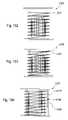 In addition to the design flexibility offered by choice of transformation temperatures and anchoring points, selection of tracks with opposing, non converging, fins offers one more degree of freedom.FIG. 128 illustrates a thermally driventrack device2,150 comprising a diverging fin thermallypowered device2,152 with a row of forwardly extending2,156 and a row of backwardly extending2,154 fins and, a set of track rails with opposing, non-converging, forwardly extending2,158 and backwardly extending2,160 fins. The fin direction of the track is determined in relation to the fin direction of thermally powereddevice2,152. The tracks can move in opposite directions with temperature cycling.FIG. 128 shows the diverging fin thermallypowered device2,152 anchored at one end with the shape memory material spring compressed in the martensitic state.FIG. 129 shows thesame device2,152 in the expanded position after shape recovery. During the expansion process thefins2,156 of the diverging fin-thermallypowered device2,152 and the fins of thetrack2,160 engage and force the track to advance a distance “x” in the direction of expansion.FIG. 130 shows the diverging fin thermallypowered device2,152 in the contracted position after reverse shape recovery. During the contraction process thefins2,154 of the diverging fin thermallypowered device2,152 and the fins of thetrack rail2,158 engage and force the track rail to advance a distance “x” in the direction opposite to the expansion direction. The advantage of this system is that tracks integrated with a single diverging fin thermally powered device can travel in opposite directions with each temperature cycle. When the tracks are restrained from traveling, constraining forces of opposite directions are developed. Again, as with other concepts presented herein, instead of fins other work enables such as wheels, or gear teeth can be utilized.