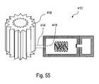 FIGS. 52,53 and54 are schematic side views of a shape memory material activated device with a self-refilling bellows type pressurant, before activation, during activation and during refilling, respectively;