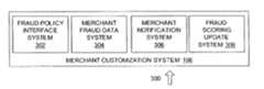 FIG. 3 is a diagram of asystem300 for merchant customization of transaction fraud processing in accordance with an exemplary embodiment of the present invention.System300 includesmerchant customization system106 and fraudpolicy interface system302, merchantfraud data system304,merchant notification system306, and fraudscoring update system308, each of which can be implemented in hardware, software, or a suitable combination of hardware and software, and which can be one or more software systems operating on a general purpose processing platform.