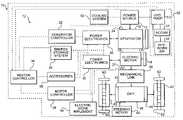 According to some embodiments,electric motor18 may include more than one electric motor, and the schematic depiction inFIG. 1 ofelectric motor18 may represent more than one electric motor such as, for example, two or more electric motors mechanically combined via a gear or gear train. By virtue of receiving electric energy fromgenerator16 and/orenergy storage system26,electric motor18 creates torque for driving amechanical link34 such as, for example, a gear assembly.Electric motor18 may be any known AC or DC motor such as for example, a permanent magnet motor, an induction motor, a switched-reluctance motor, or a hybrid combination of the above.Electric motor18 be sealed, brushless, and/or liquid cooled.