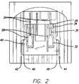 Thetool terminal assembly16 includestool terminal28, which is a pronged or fingered type of terminal, which receives theblades26 of thebattery terminals24 there between. Preferably, thetool terminal28 consists of twofemale terminals30 that function as electrical contacts. Eachfemale terminal30 has tworesilient guideways32 that can slightly flex away from each other. The distal ends34 of the two guideways taper away from each other to form an enlarged entry area to help receive and align eachblade26 as it is inserted into thenarrow section36 of thetool terminals28. Thenarrow section36 of thetool terminals28 are formed or sprung in a configuration such that thenarrow section36 of eachguideway32 engages theblades26 of thebattery terminals24. Thenarrow sections36 are preferably close together to be more narrow thanblade26 to secure theblade26 after the blade forcibly expands the tworesilient guideways32 when theblade26 are inserted. Thefemale terminals30 can be aligned withbattery terminal blades26 functioning as electrical contacts of thebattery pack18. It is possible to reverse this configuration such that the prongs are on the battery and the blades are on the tool.
