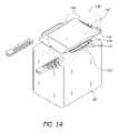 FIG. 14 is a perspective view of an alternative embodiment of a container and portions of an interface with a sorting and disposal station;