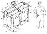 The machine-readable code or pattern, wireless identifier or the like can be located on, near or within any portion of the liner, such as, for example, an interior or exterior surface, within a wall, etc. In addition, such codes or patterns can be included throughout the entire liner or in only a portion thereof. For example, if a machine-readable identifier comprises a color code or a graphical pattern, such a code or pattern can be positioned on the entire exterior surface of the liner. In another embodiment, the code or pattern may be confined to a small area on an exterior surface of the liner. It will be appreciated that a liner can include two or more machine-readable identifiers. With reference toFIGS. 53A and 54B, a machine-readable code, color, pattern or the like can be placed on an upper portion of the liner, such as, for example, near the hook or flange portion.