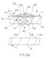 Lower half66 includes a part of central portions14-1 extending leading into elongated portions of strand12-1 which define third portion26-1 and function to pierce the tissue of vessel11, closing the aperture. Referring toFIG. 9A the parts of deployedelongated strand12 definingthird portion206 preferably extend within the tissue surrounding the aperture closed in vessel11.