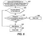 Referring toFIG. 6, the flow chart illustrates the white list comparison test. Assuming that an email message is a phishing attempt, the addresses in the source may lead to a forged website. If it is possible, through defined modifications (normalization) of these addresses, to produce an address leading to an official website (which may be contained in the White List), there is a likelihood that the message is a phishing attempt. At610 the input includes the incoming address from the revised list and a white list of company names which may be targeted by phishing attempts, such as banks, e-commerce web sites, etc. For each address in the white list of company names (620), a comparison is made at630 to determine if the incoming address appears on the white list. If the incoming address appears on the white list, it is found to be not valid and a warning is returned to the user that the email may be a forgery at660. If a match is not present, the address is possibly valid and the next address is tested at640. Addresses identified as possibly valid are then subject to the search engine test.