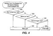For each address in the revised list (245), comparison tests, described more fully with respect toFIGS. 4-7 hereinbelow, are performed at250 to determine if each address is valid. If the address is not valid, a message is sent to the user at270 warning that the email may be a forgery and not to respond to the message. If the address is valid, the next address in the revised list is tested at255 and this process is continued until all addresses in the revised list have been tested. At260 the next address is retrieved from the source code at230 and the normalization procedure and comparison tests are performed. If the electronic message is found to be valid, the user is notified that the message is valid and accepted at265.