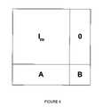 Let m be the number of source symbols received. Then, since we are describing a systematic linear transformation, the first m rows of M′ contain a single entry each. We can permute E′ and S and the rows and column of M′ such that the first m rows and columns correspond to the received source symbols, the m×m submatrix in the upper left of M′ is then the identity matrix and the m×(k−m) sub-matrix at the top right of M′ is the zero matrix. So, M′ has the format shown inFIG. 4, where Imis the m×m identity matrix, 0 is the m×(k−m) all zero matrix, A is a (k−m)×m matrix and B is a (k−m)×(k−m) matrix. The upper m rows of M′ are written as Im|0 and the lower (k−m) rows of M′ are written as A|B and we now have the following Equations 4-5, where E1is the first m entries of E (received source symbols), E2is the last (k−m) entries of E (received repair symbols), S1the first m entries of S (received source symbols), and S2the last (k−m) entries of S (unknown source symbols that are to be solved for).