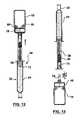 FIGS. 14-19 illustrate successive stages in the deployment of the pharmaceutical transfer assembly shown inFIG. 1 to transfer a fluid pharmaceutical component from a prepackaged pharmaceutical vial to a syringe according to a further embodiment of the invention;
