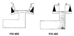FIGS. 46C-46E provides three side views of two small cantilevers located on a larger cantilever where it is believed that the two small cantilevers can aid in achieving adequate scrubbing during vertical compression of the probe.