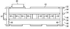As one skilled in the art will realize, a PCB may include more than four layers, such as six layers, eight layers, and even twelve layers. The concept of the present invention is still readily applicable.FIG. 5 illustrates an exemplary PCB board having six layers, including three ground layers and two signal layers shielded by the ground layers. Preferably, the high-Dk rods50 are placed between the power layer and the ground layer although they can be in the different layers, as will be discussed in details in the subsequent paragraphs.