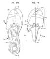 Slipcovers240 are preferably provided in whole sizes, for example 9, 10, 11, etc for U.S. men's shoe sizing. Right foot and leftfoot slipcovers240 should be provided, as thecartridge system200 can be tailored to the variations between the right and left feet. It should be understood that theslipcover240 may be used not only with thecartridge system200, but also with all other cartridge systems described herein, as well as with conventional midsoles, insoles and even custom orthotics. The stretchable or elastically resilient material enables the wearer to insert the midsole, insole or custom orthotic, into theslipcover240. Thecover248 provides a suitable surface for contacting a wearer's foot or sock. The anti-microbial and/or anti-odor means are very beneficial. Furthermore, because theslipcover240 is readily removable from the shoe, it may be washed and/or dried out quickly and easily. Theslipcover240 may also be used to store one or more cartridges, orthotics, etc. Theslipcover240 may be sold or otherwise provided with a number of different cartridges, for example as a kit.