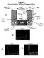 FIG. 25bshows three views of a silver coating on the upper corner of a reaction chamber and the top surface of a fiber optic faceplate, where the thickness of the coating on the sidewall is different from the thickness on the top surface of the cladding. This difference in thickness is due to the spinning of the substrate during the metal deposition process.View1 shows the entire reaction chamber.View2 is a close-up of the upper corner and the top of the reaction chamber, and theView3 is a magnified view of this upper corner.