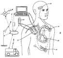 Further, an on-line consultation withphysicians979 remotely located from the operating room, could be initiated using, for example, an expert on-call program. As the on-call physician connects with the Network Operating Room, they are provided with a summary of the surgical plan and reference similar procedures using, for example, vastclinical data repositories982 viaserver988. Accordingly, the invention provides complete connectivity between all care providers whose instantaneous availability anywhere in the world to cover all aspects of care, is available in the operating/emergency/procedures room. Further, a parallel network ofsupport systems993 provides the patient in the home with connectivity to the primary care physician and other health care professionals via appropriate connectivity or communications interfaces995. Thus the service is focused entirely on the patient, improving the physical condition and psychological outlook of patients, and reducing the anxiety among patients and others involved in healthcare.