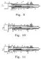 FIG. 10 is a section view similar toFIG. 9 wherein a first trigger wire release mechanism has been moved rearwardly to release a first end of the stent.