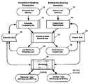 With reference now toFIG. 2, the functionality of the software of the preferred embodiment of the present invention may be described in overview. Enterprise-user input block10 represents various forms of characterizing information related to the enterprise. Such information would be entered through an enterprise-user terminal2 as depicted inFIG. 1. That information may be of a general nature, or in the preferred embodiment may be more detailed information that is processed atenterprise characterization block12, as described more fully below. It should be noted that, except for those instances when the information inherent to a unique input or output block is explicitly described, all input and output blocks shown in the figures described herein are intended to represent and contain the information provided or received, respectively, by users that is described for relevant attached blocks in related figures.