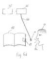 Other sensing technologies may also be utilized including the radio frequency identification technology or (RFID). Referring back toFIG. 6f, a radio frequency identification device or tag41acan be embedded into the printedmatter40. A radio frequency identification device ortag reader49 receives signals transmitted by the radio frequency identification device or tag41a. Device or tag41amay be passive, which transmits signals by using small electrical currents induced in its antenna by the incoming radio frequency signal provided by theradio frequency reader49; or active, which has its own power supply and can be constantly powered to transmit signals. The information embedded in the radio frequency identification device or tag41awill provide commands to thePC65 to access programming material by directing currently running applications, or to retrieve and run applications from remote or local sources.