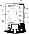 Pre-computed aim points could also be made available in other formats.FIG. 7 shows an exemplaryhandheld computing device16, such as a PALM.® or Pocket PC personal digital assistant (PDA), which includes aGUI30 to electronically display, for example, two aim point distances, hole aimpoint18 andbreak point20, and anaim point indicator32, for a green22, once theball position24 has been determined, either manually or via an automatic locator function, such as by a GPS receiver. For example, a GPS receiver may be attached to the hand heldcomputing device16 and the device positioned over theball24 to record the ball's24 location on the green. For manual ball location, the user could simply tap the screen to indicate where on the green22 he believes hisball24 to be. Thedevice16 would then show aim point distances18 and20 and theaim indicator32 immediately, and give the user the option to toggle apreferred putting style26 and thegreen speed28 in order to display the corresponding aim point distances18 and20. In an aspect of the hand held computing embodiment, audio indicia could be provided to announce information provided on the GUI, such as aim distances, style of stroke, and green speed. In a further handheld embodiment the device may be programmed to accept verbal commands. The handheld may be programmed to receive information such as topography information, aim data, DTM information, or course condition information, for example, while playing a round of golf, so that the most current aiming information can be provided.