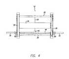As in the previous embodiments, the horizontal and vertical slides comprise outer sleeves housing linear bearings and are slidably engaged over the respective horizontal and vertical guides, although they may alternatively comprise wheels, rollers, or other sliding devices. Cutouts140 in opposite sides ofplatform136 provide clearance for thevertical guides106,108 to extend past the platform for rigid attachment to the lower traveling cross bar186 (seeFIG. 34). The upper ends of thevertical guides106 and108 are rigidly connected to the opposite ends of the horizontal travelingcross bar185 in exactly the same manner as in the previous embodiment.